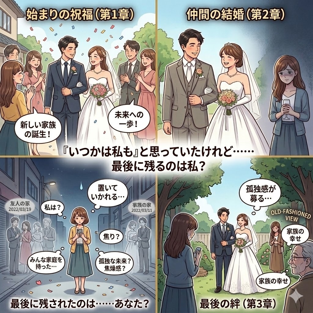 「友達がいれば寂しくない」 それは、友達が「独身」という同じステージに立ってくれている時だけの、期限付きの特約に過ぎません。