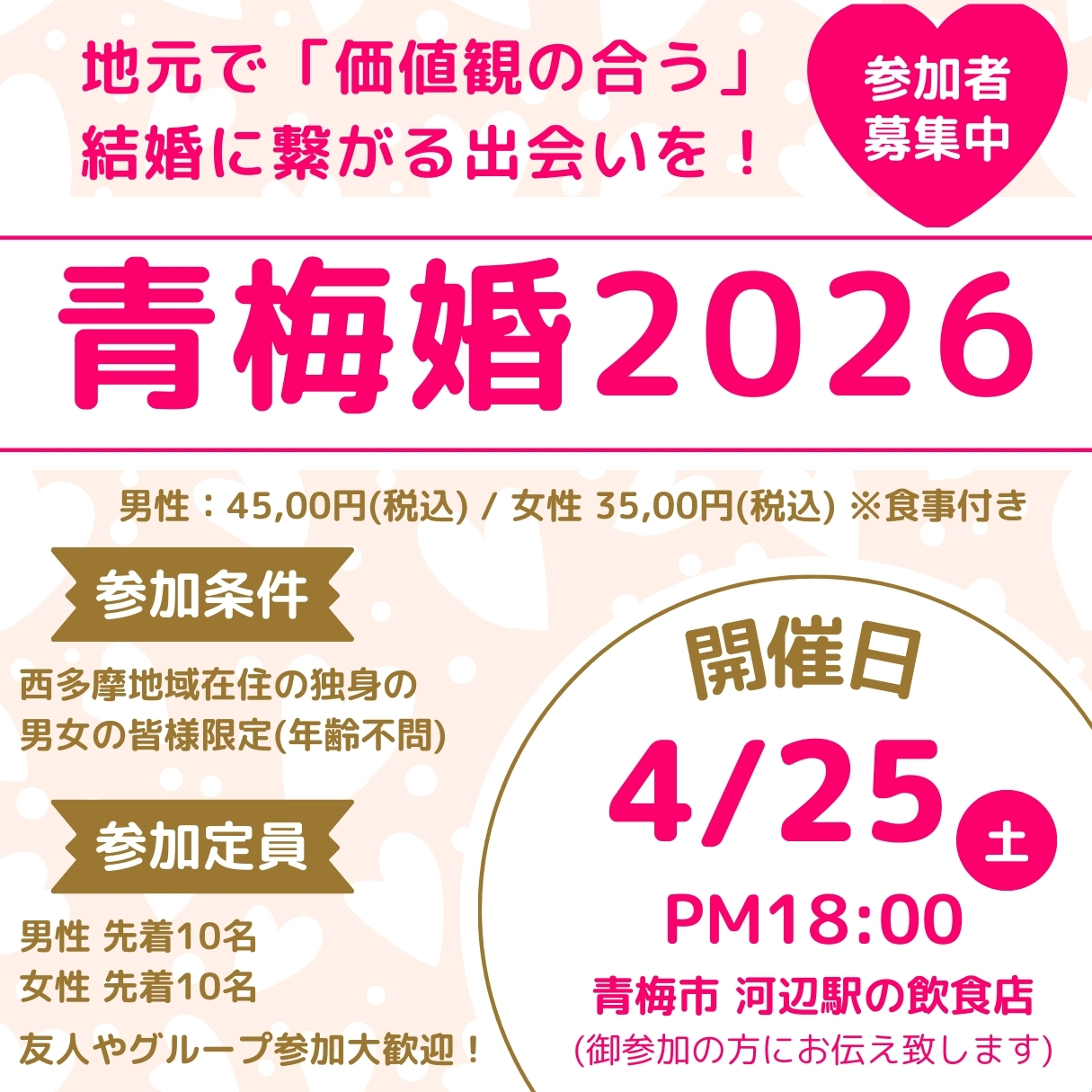 | 2025/3/5 | 青梅大祭 2026 公式 広報誌に当相談所の掲載が決定! 今後も地元の出会いにこだわり続け「圧倒的な継続した集客」に力を入れて参ります。 |