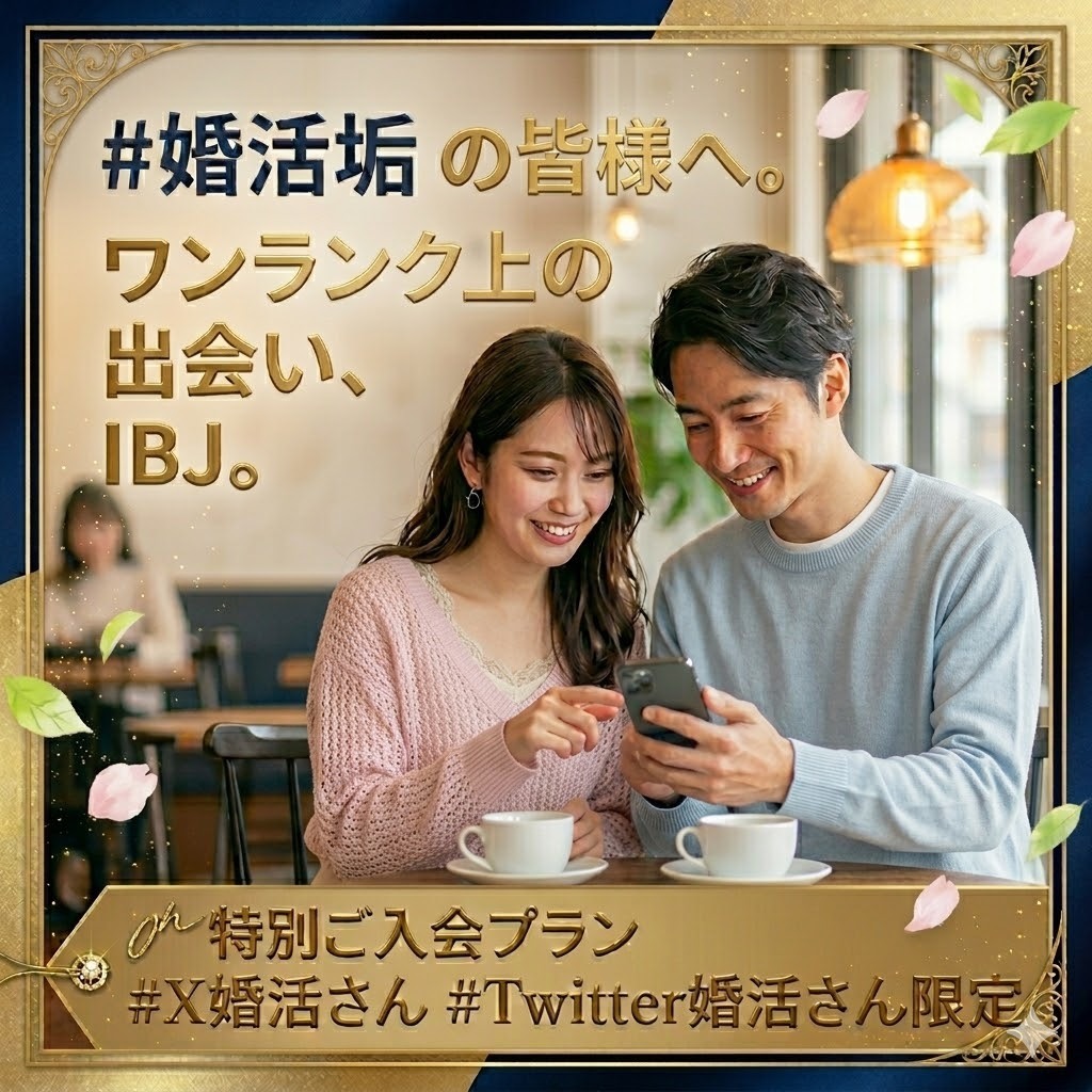 X(旧Twitter)にて婚活垢をお持ちの方限定のIBJ結婚相談所、1ヶ月お試しご入会プランです。