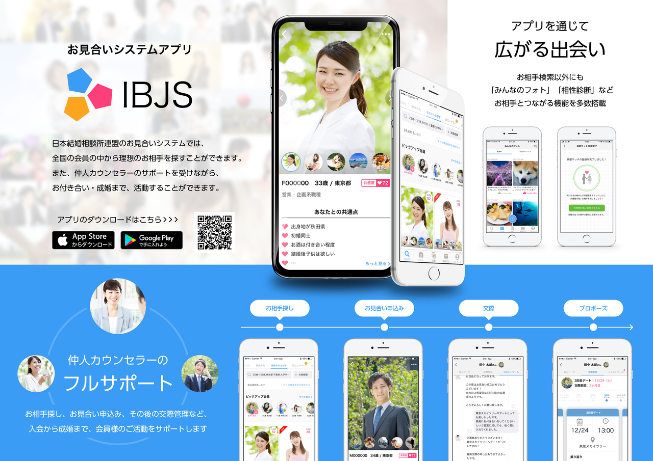 24時間何処にいてもお客様のペースで希望の相手を見つけられる事ができる「お見合いシステムアプリ」が利用できます。